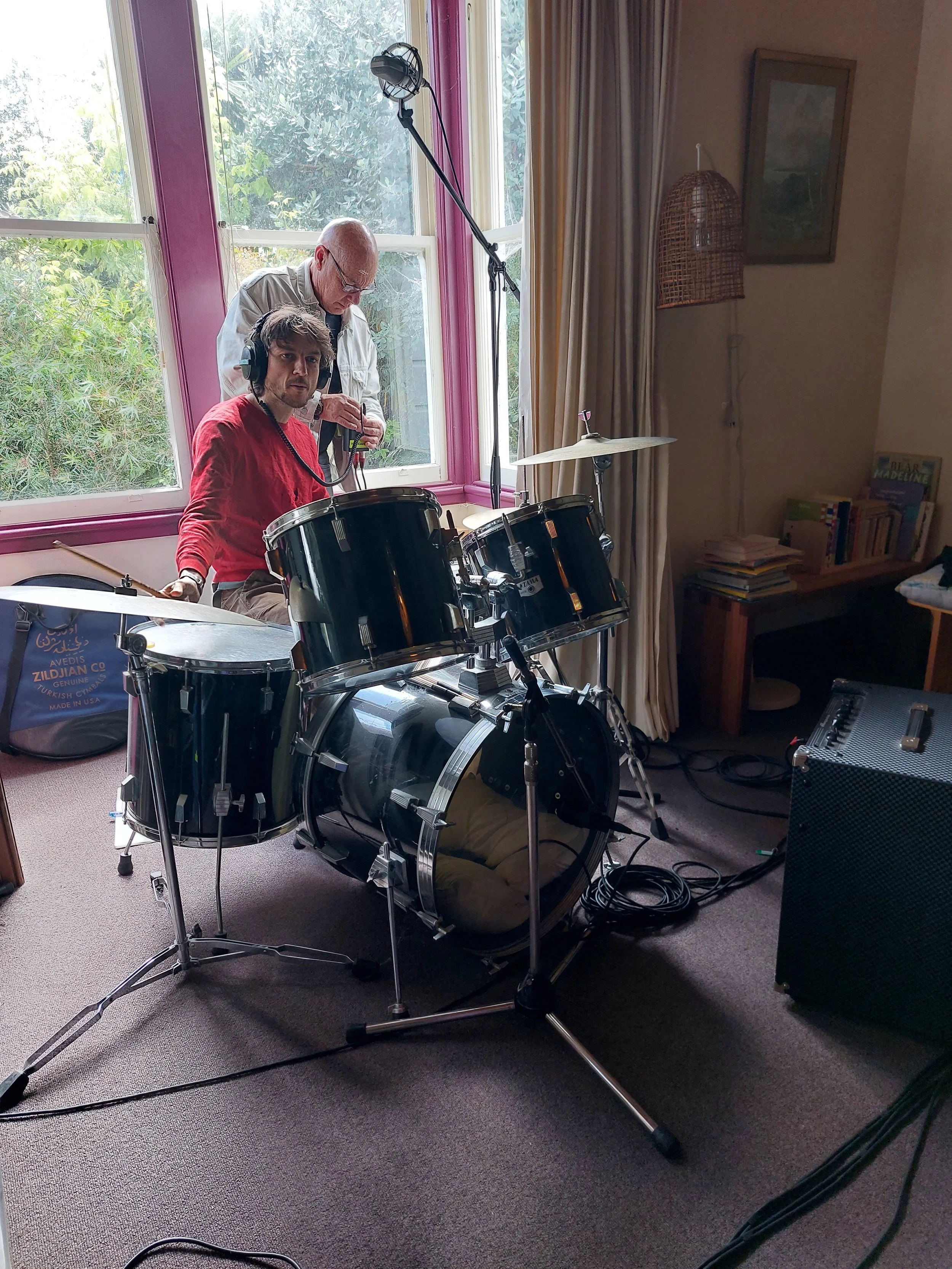 “We smashed it! what a fantastic recording process. “ Heti and Adie loved recording with Milo Cawthorne on drums and Ross Laurie on bass guitar. Together, the four worked flat out with concentrated enthusiasm and dedication to detail. Malcolm in his usual calm fashion, was at the helm on his desk in the room opposite, connecting with each musician through headphones. He took his time mic-ing everyone up especially the drums which sound amazing !. Everything ran smoothly over four days. Heti said, she realised, as they were recording the last song, that she didn’t want this part of the work to end it was so much fun. She enjoyed the banter as well as the musical connection made. It was a great collaboration. All are looking forward to hearing the end result. This album “Hidden Plains” to be mixed and mastered with Malcolm, will be out later this year.